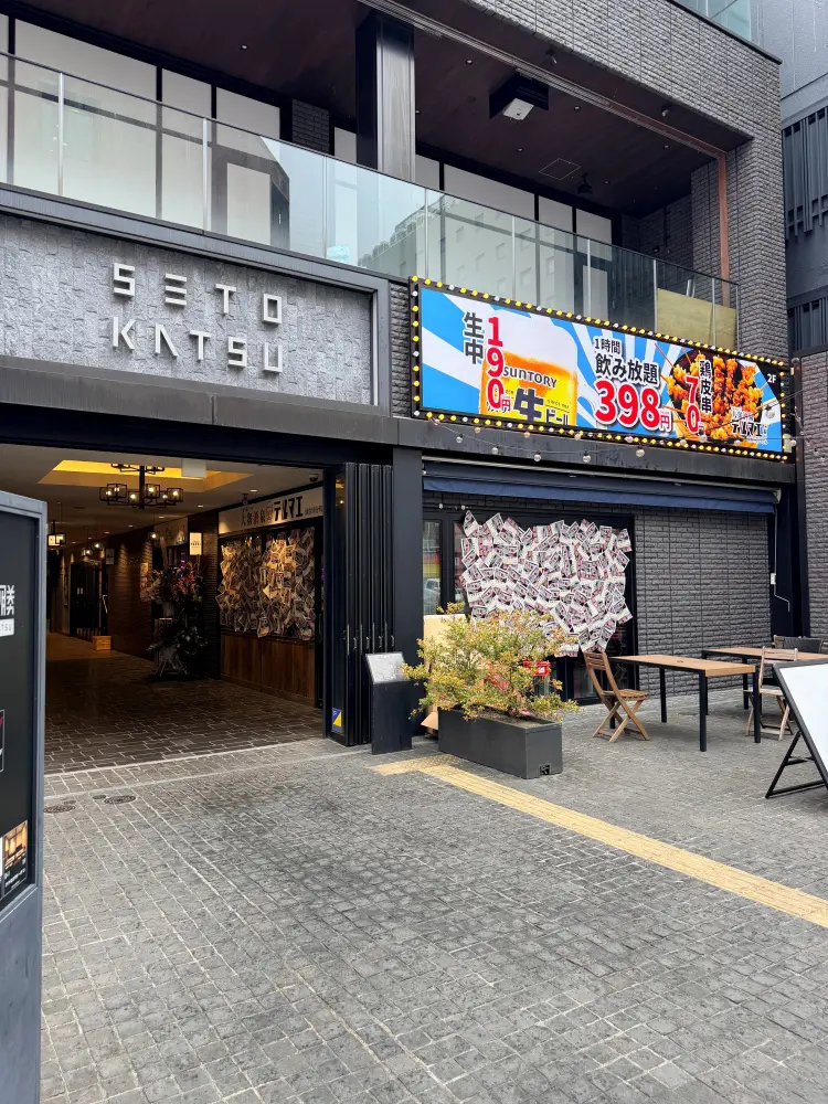 国分町のメイン通りに面した「瀬戸勝ビル」の1階で、「飲み放題398円」の看板が目立つのですぐに分かるでしょう。