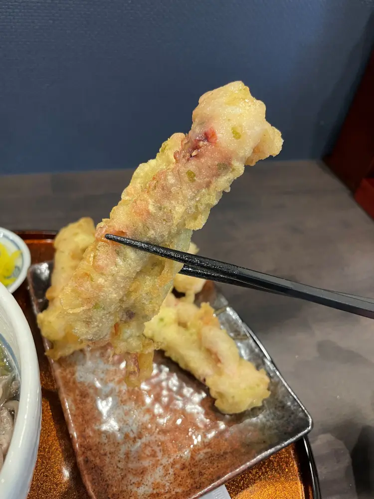 冷えたつゆで口中が落ち着いたところに、熱と香りを携えたゲソ天を。いや、あらためて見るとやっぱりボリュームあるねこのゲソ天!