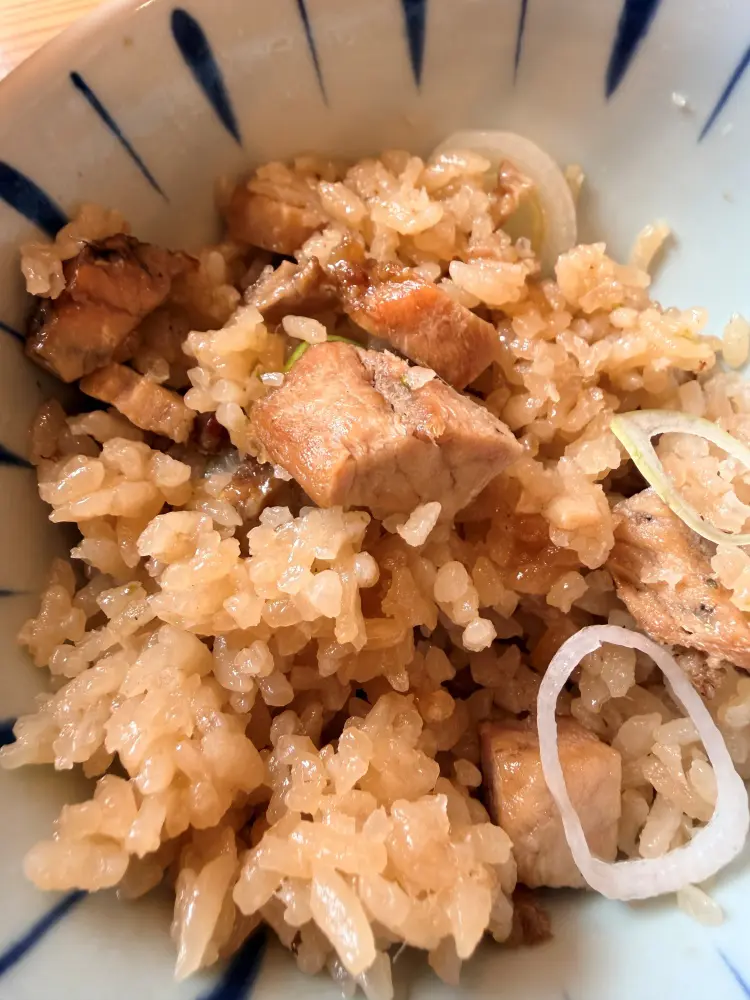 ということで、「炊き込み焼豚丼」も注文。チャーシューを混ぜた炊き込みご飯に、ネギというシンプルなビジュアル。